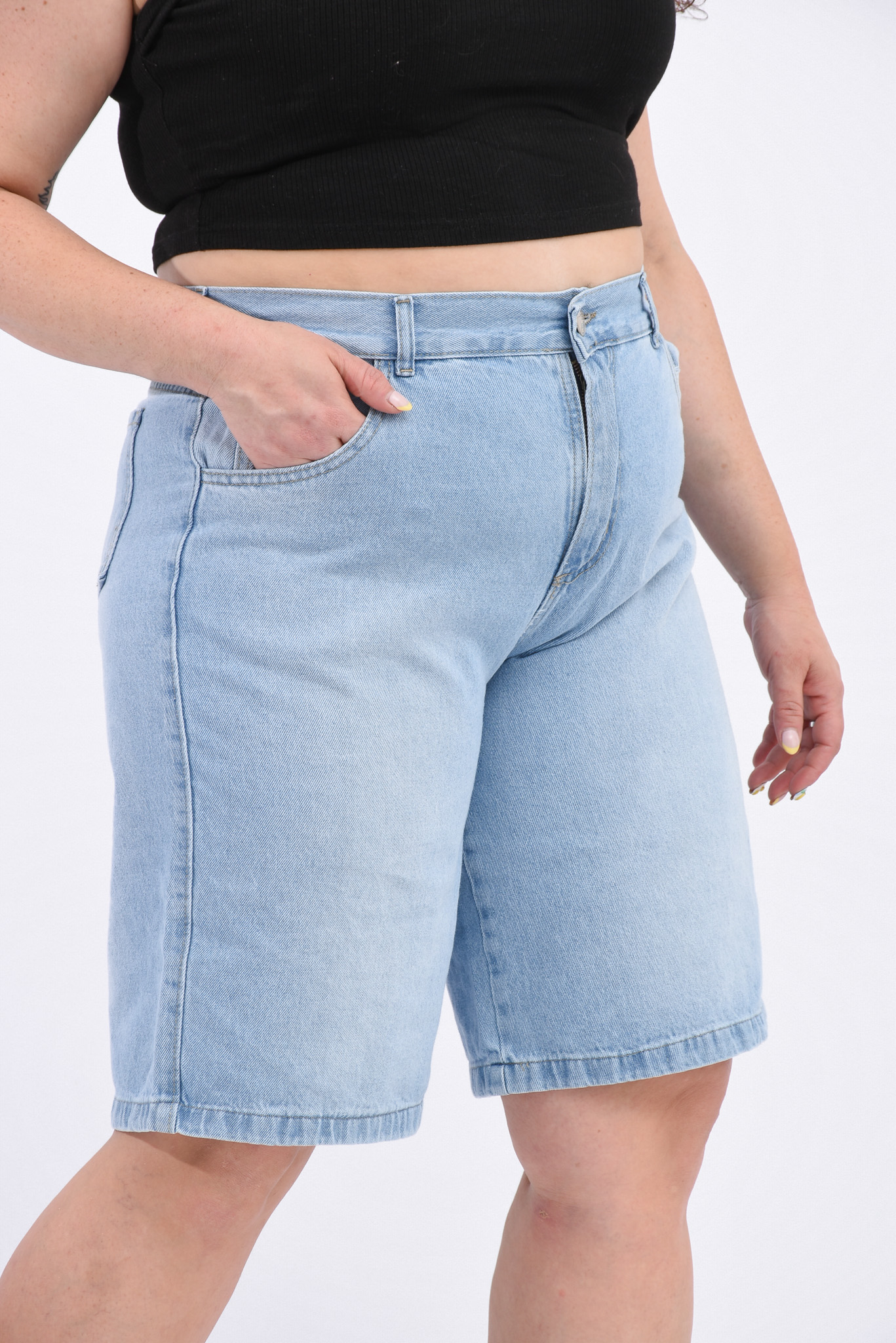SHORT TIRO ALTO CELESTE C/ROTURAS DESFLE